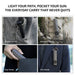 • Five Brightness Levels in Both Modes: Adjustable light intensity for floodlight and spotlight modes.
